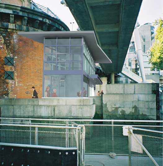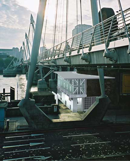 The Kiosk fulfills two different needs. On the one hand it is a structure for the commercial sale of tourist souvenirs and related items. On the other hand it is a viewing area for the contemplation of the Thames. It is designed to combine commerce and contemplation.