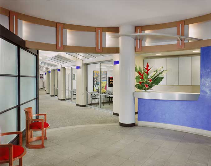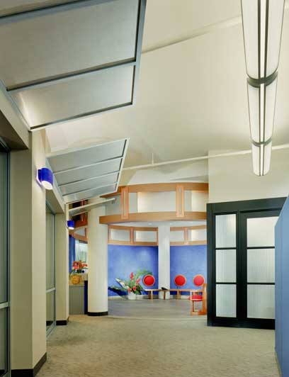 The rectangular floor plan of MJM Creative Services, a corporate event planning, design and media company, forms a double square comprising thirty-two rectangular column bays. Elevators are located at one end and fire stairs and freight elevators at the other end. Correspondingly, the plan was divided into a central open square with two halfsquare ends. The elevator end is occupied by executive offices, administration and conference rooms. The opposite end contains the graphics and film editing departments, art studies and information storage. In between is an open area of flexible design that is capable of accommodating a limited number of permanent staff, while also being able to absorb large numbers of freelance workers, engaged for particular projects.