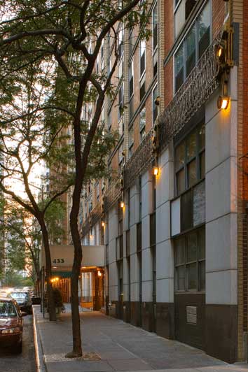 Located on the Upper East Side of Manhattan at the edge of the exclusive Sutton Place residential neighborhood, between 1st and 2nd Avenues, 433 E 56th Street is a mid-block ten story apartment building built in 1962. As with many buildings conceived in that era, it is based on Functionalist principles, meaning that its architectural expression is derived from the program within, in this case apartment units, as expressed in the tripled, doubled and single window units, corresponding to the living rooms, bedrooms, and kitchen or bathroom.