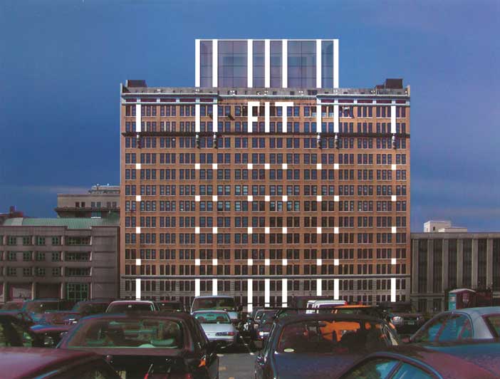 The Fashion Institute of Technology (FIT) had purchased an abandoned building on the far west side of Manhattan for use a dormitory, and wanted to improve the design of the façade in a way that would call attention to the institution.
