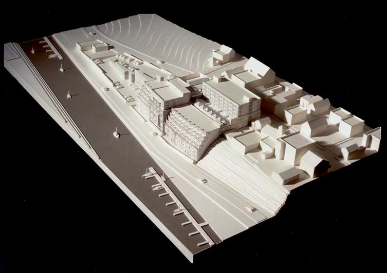 This mixed use project involves the adaptive reuse of an abandoned meat-packing plant, located on a steeply sloping site adjacent to the Rondout Creek in Kingston, New York. Some of the existing monumental brick buildings will be reused and added to, to create a 200 room hotel, retail stores, including an antiques mart, 34 units of senior citizen's housing, banqueting facilities, restaurant/bar and other commercial space.