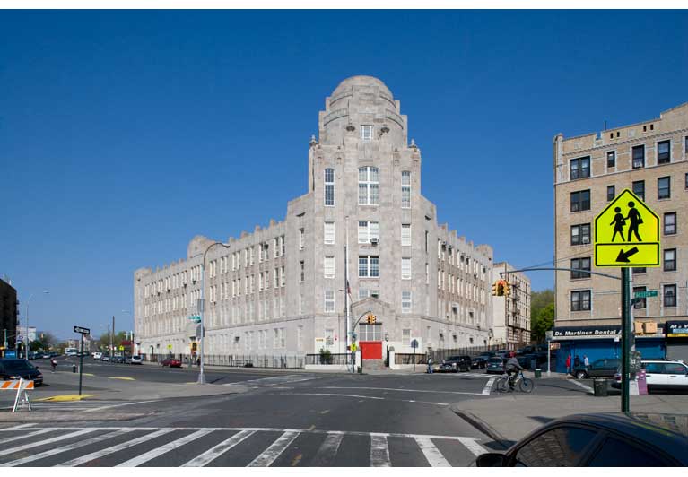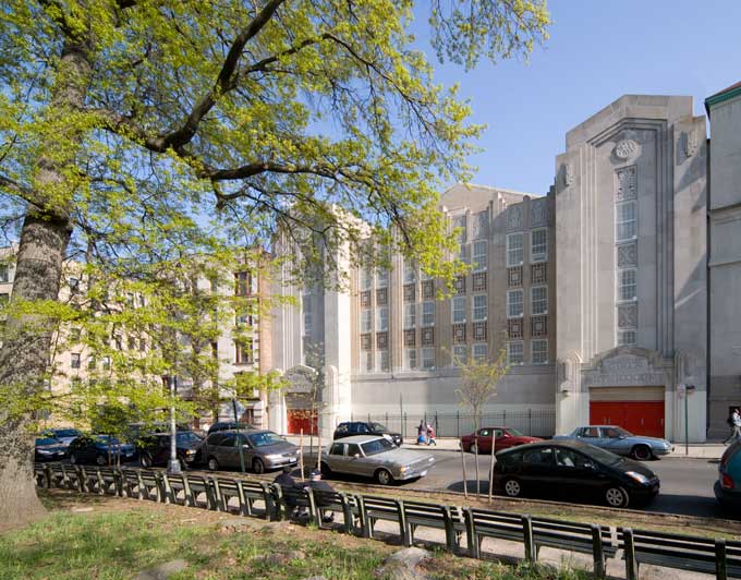 The Herman Ritter School, IS 98, is one of the most architecturally sophisticated historic buildings in the New York City school system. The building’s accommodation of the uneven street pattern, existing apartment buildings on the block , adjacency to the park, splendidly plastic façade articulation, grand and finely proportioned interior public spaces and crowning three-story limestone rotunda at the street corner represents a high point of school design and the cultural priority accorded to public education until the Second World War.