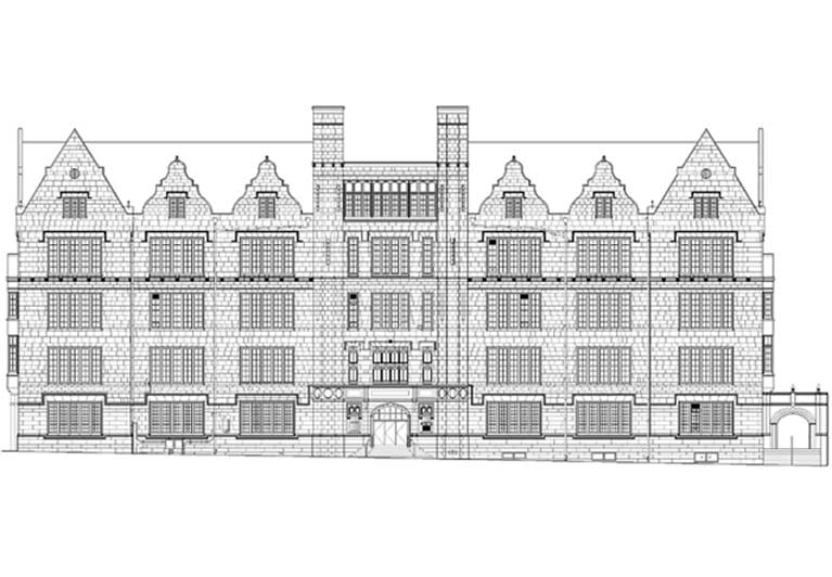 - New terracotta blocks and special moldings were fabricated for extensive façade rebuilding